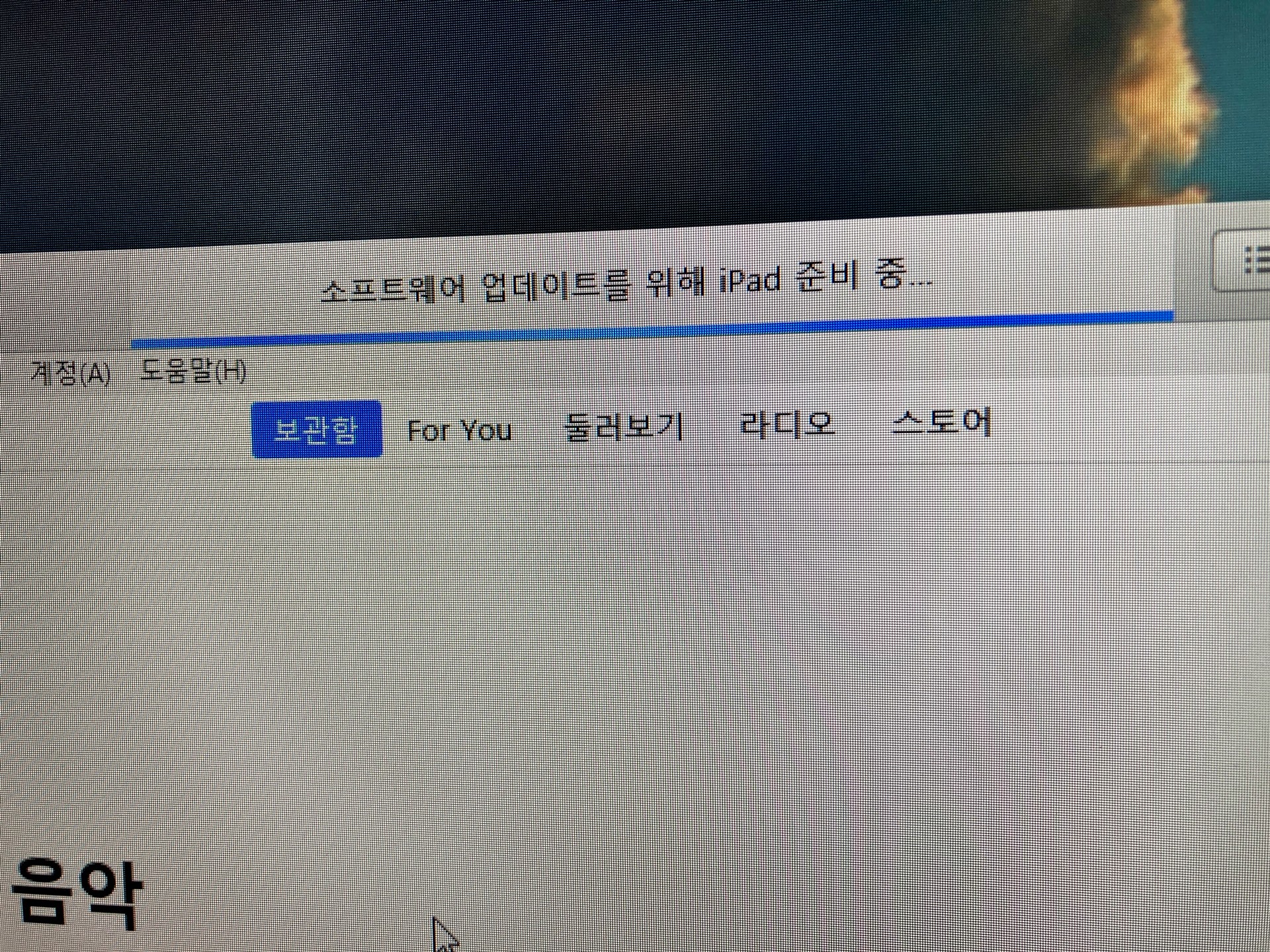 처음에는 윈도우 아이튠즈에 연결해서 업데이트를 시도했으나 여전히 오류가 발생했다. 그래서 오래전에 지인에게 선물 받은 후 장난감처럼 사용하던 맥북에어(A1466/macOS Catalina))에서 다시 시도했다.