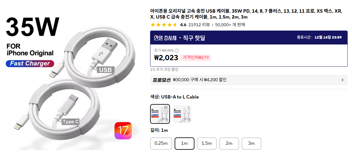 18단계로 나뉜 해결 방법 중 내가 주목한 부분은 15번이다. 정품 케이블이 아닌 싸구려 케이블로 연결해서 성공했다는 부분이다. 그래서 바로 알리익스프레스에서 대략 2천 원 정도의 저렴한 케이블을 구입했다.