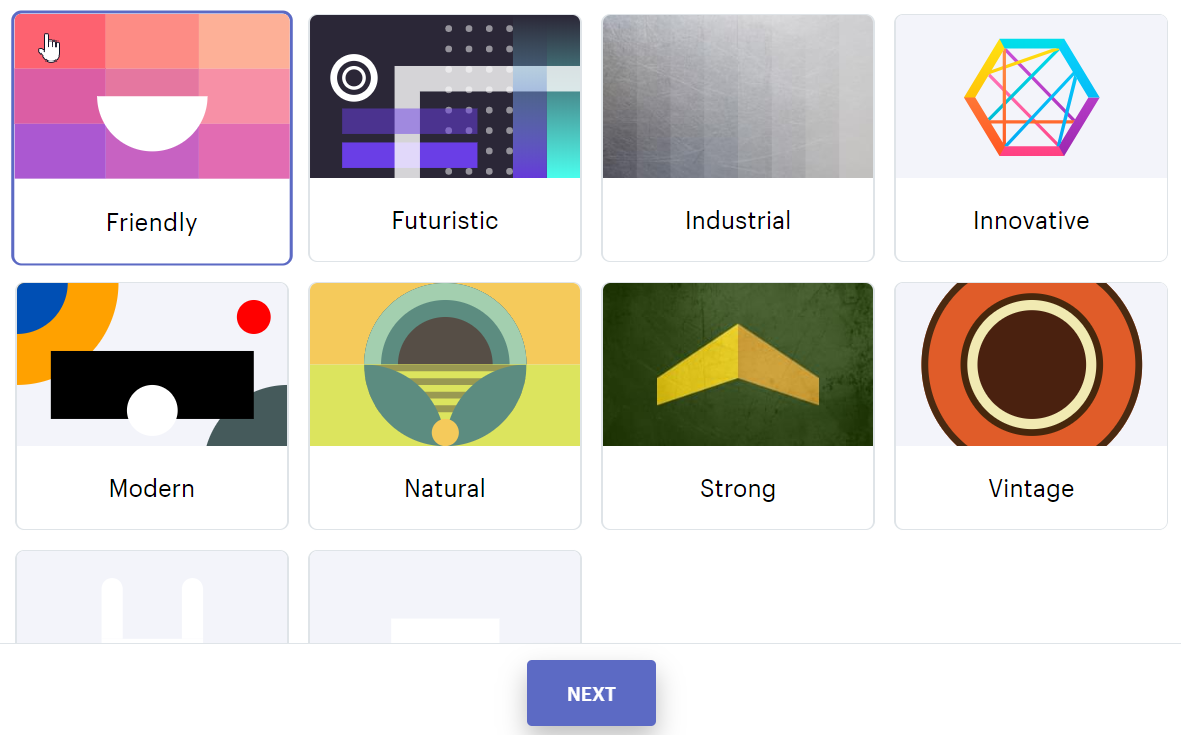 로고 스타일도 고를 수 있다. 회사의 분위기 또는 사용하려는 사람의 취향이 반영되는 선택지다. 나는 주로 creative, friendly, invative를 주로 고른다. 참신하고 톡톡 튀는 로고들이 만들어진다.