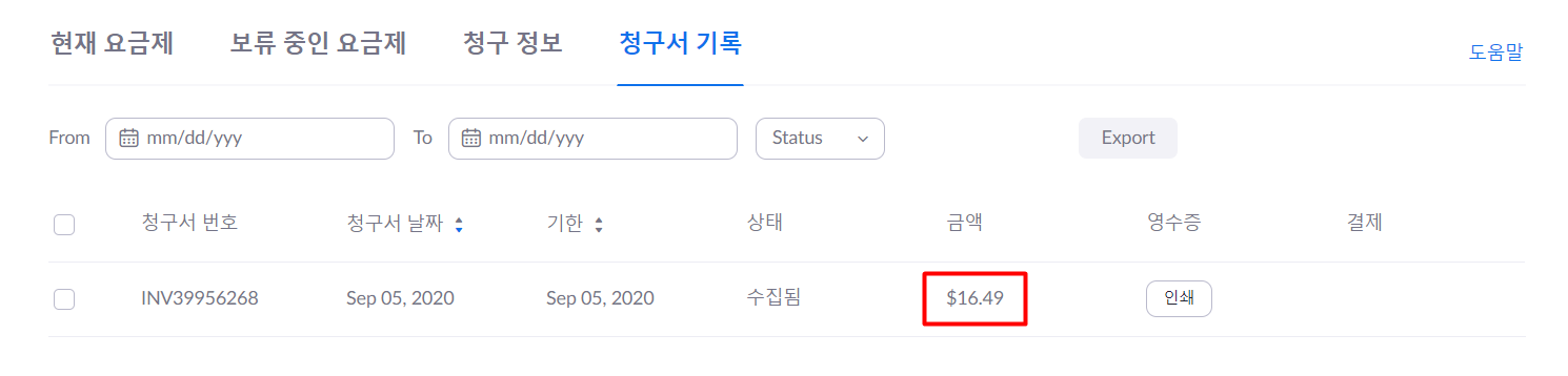 그동안 줌(ZOOM) 무료 버전만 이용하다가 이번에 수업 시간 40분 제한을 풀기 위해서 유료 버전을 구입했다. 처음 줌을 이용할 때는 무료 버전으로도 3시간 이상 사용할 수 있어서 일시적으로 무료 버전의 시간제한이 풀린 줄 알았는데 어제 수업을 할 때는 시간제한 표시가 화면에 나와서 그 자리에서 5분 만에 카드 결제를 했다. 줌을 하는 중에 결제를 했는데 결제를 마치는 순간 시간제한이 풀렸다는 내용을 팝업으로 알려주었다.