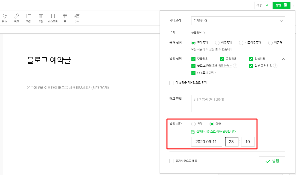 예약 발행 기능 이용시 주의할 점