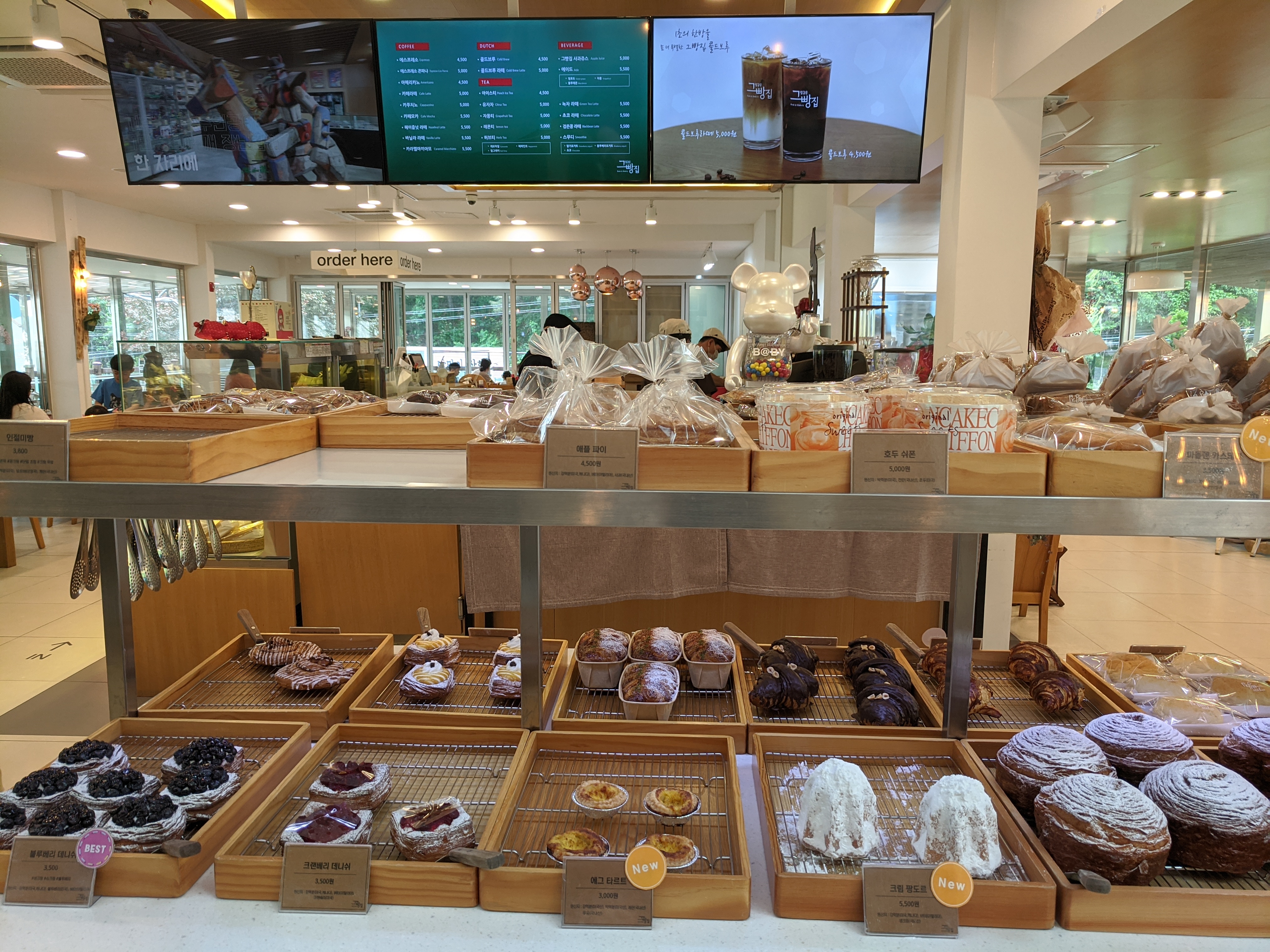 달아실 미술관 바로 옆에는 제법 규모가 큰 빵집이 있다. 모두 옥산가에서 운영하는 곳인데 이곳도 제법 유명한 곳이라 미술관 탐방을 끝내고 잠시 쉼을 얻기 위해서 들어갔다. 흔히 관광지에 있는 규모가 있는 빵집들은 스타벅스 못지않게 가격이 비싼 편인데 이곳은 가격도 적당하고 빵과 커피맛도 좋았다.