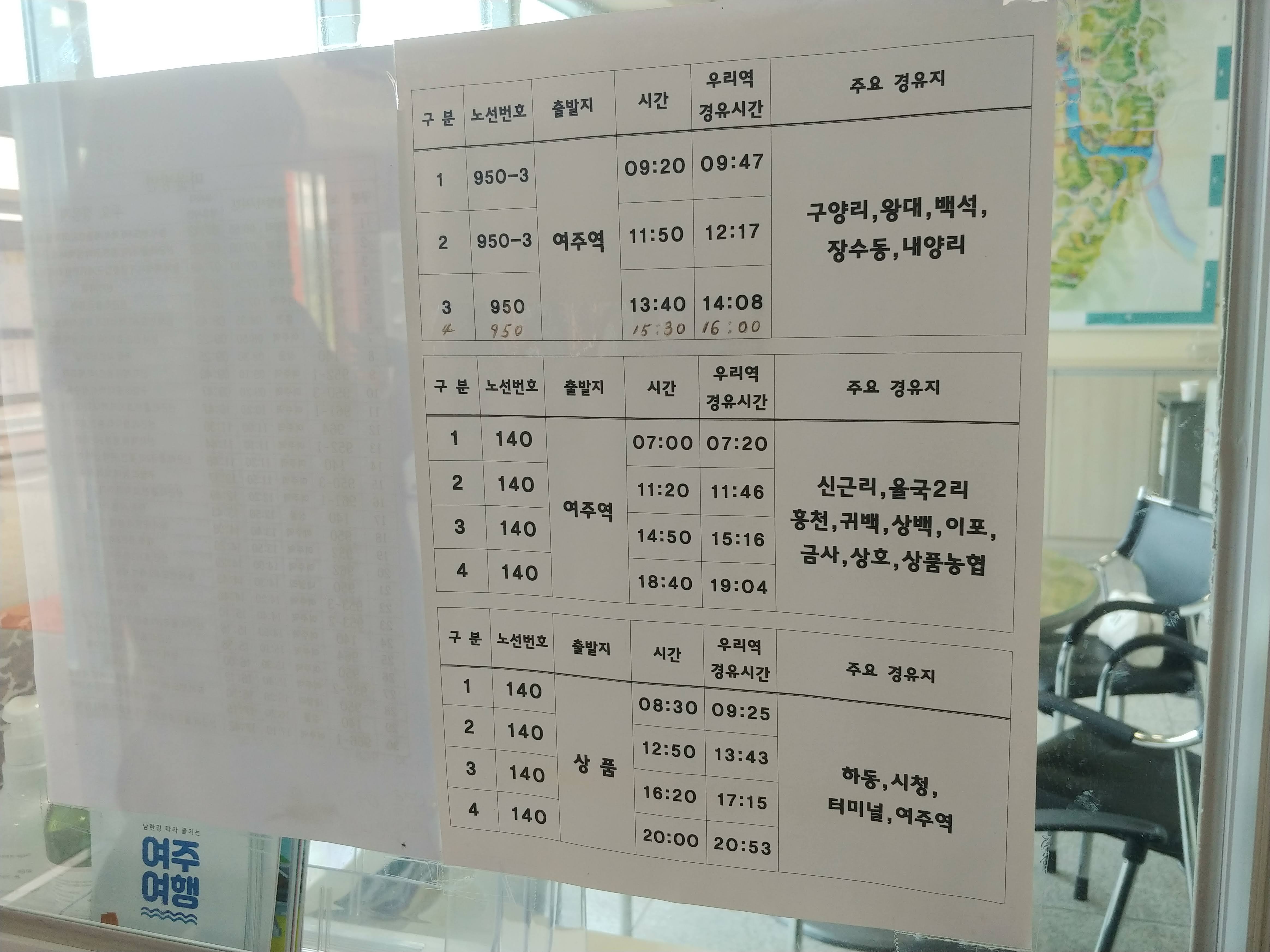 얼마 전 여주로 1박 2일 여행을 다녀왔다. 나는 차가 없기 때문에 모든 여행은 대중교통을 이용한다. 의왕에서 여주로 가는 가장 빠른 대중교통 코스를 검색했더니 광역 버스를 타고 이매역으로