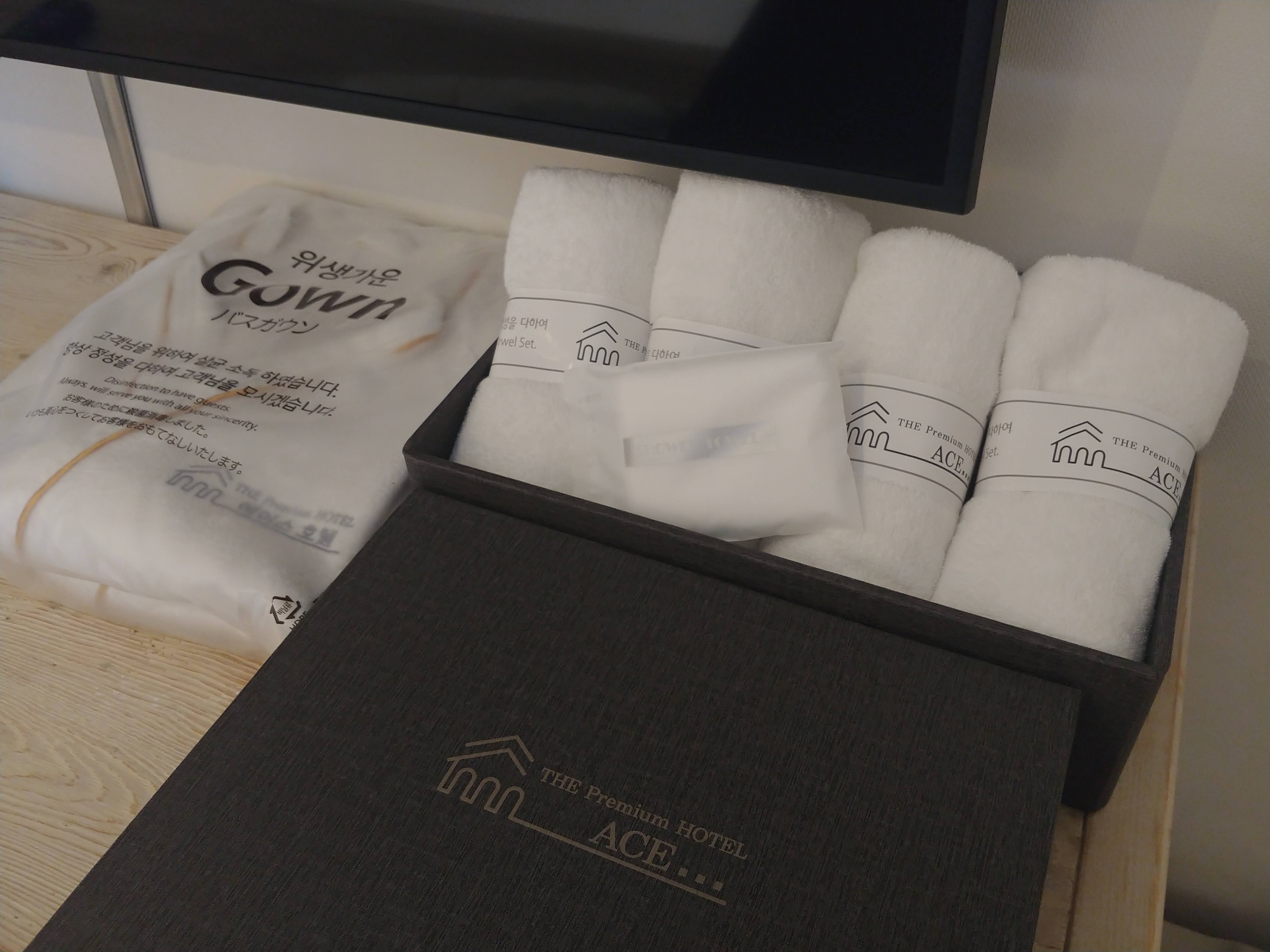 그 외에도 잠옷, 수건, 와이파이, 실내 슬리퍼 등 모든 것이 풀옵션으로 갖추어져 있는 곳이라서 1박 준비를 하지 않고 가도 편리하게 숙박을 할 수 있다. 야놀자 사이트에 가면 에이스호텔에 대한 300개가 넘는 평이 있는데 평균 평점이 4.9점으로 매우 높고 직접 적은 평들도 매우 좋은 것을 알 수 있다.