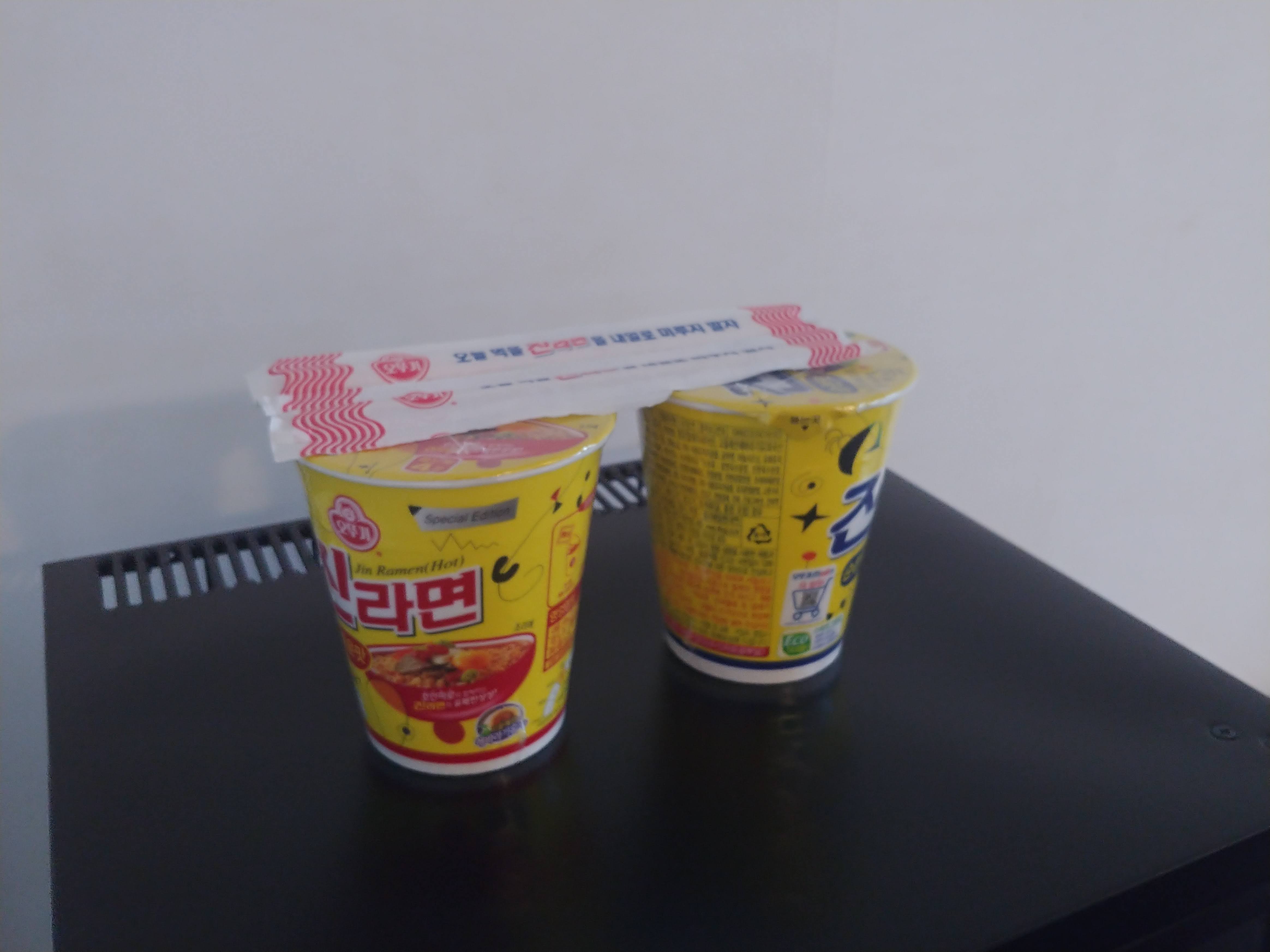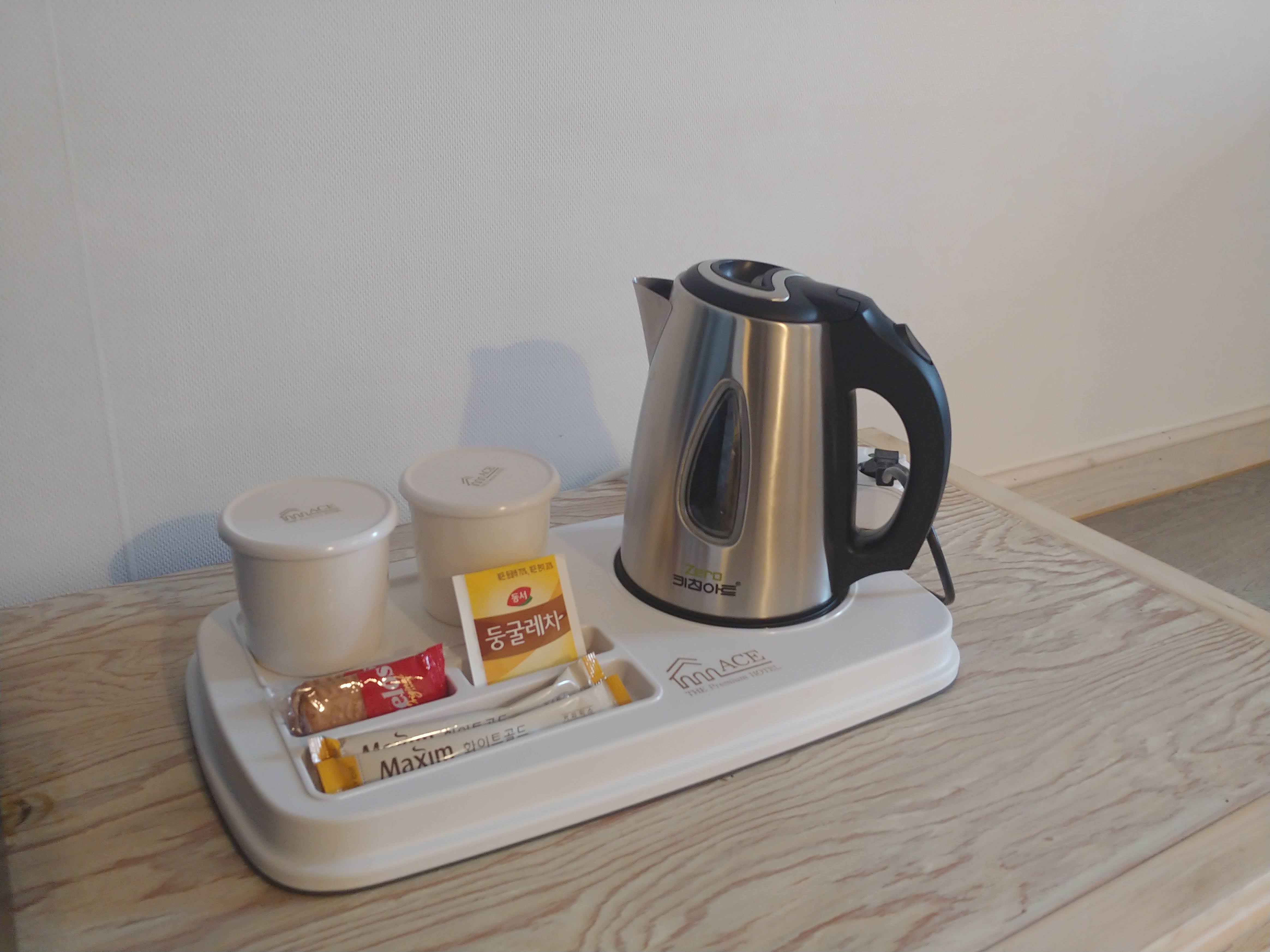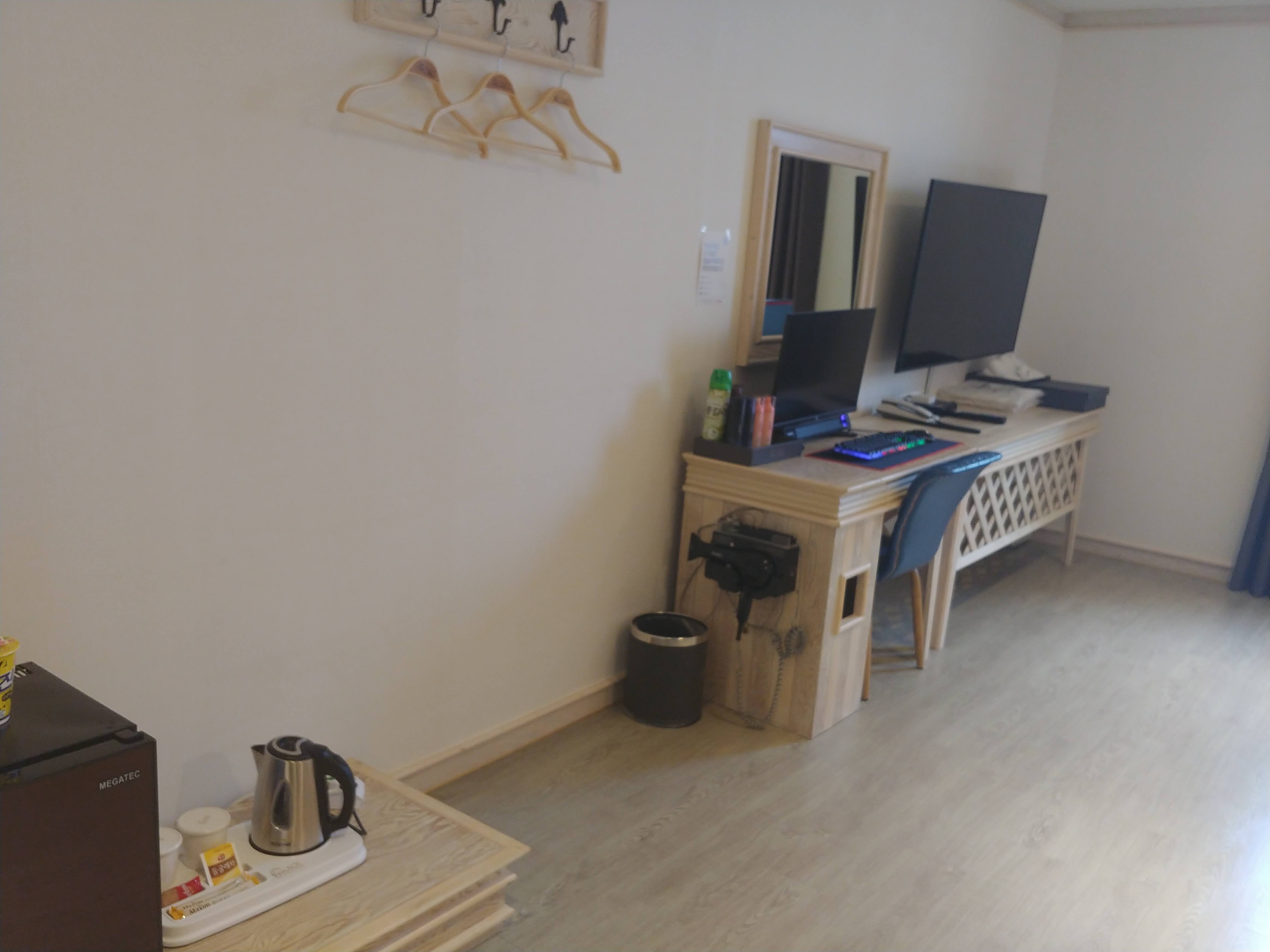 방 안에 컵라면과 물, 음료수, 커피포트가 기본으로 준비되어 있다. 컵라면과 커피포트가 세팅된 모습에서도 섬세한 손길이 느껴졌다. 아주 사소한 차이지만 나는 이런 차이에서 만족감을 더 크게 느끼는 것 같다.