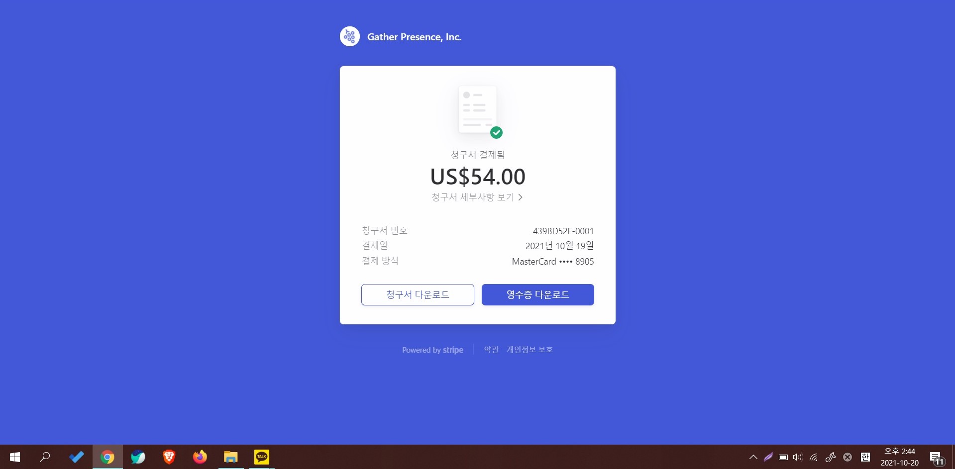 7. 입력한 이메일 주소로 청구서와 영수증을 확인한다.