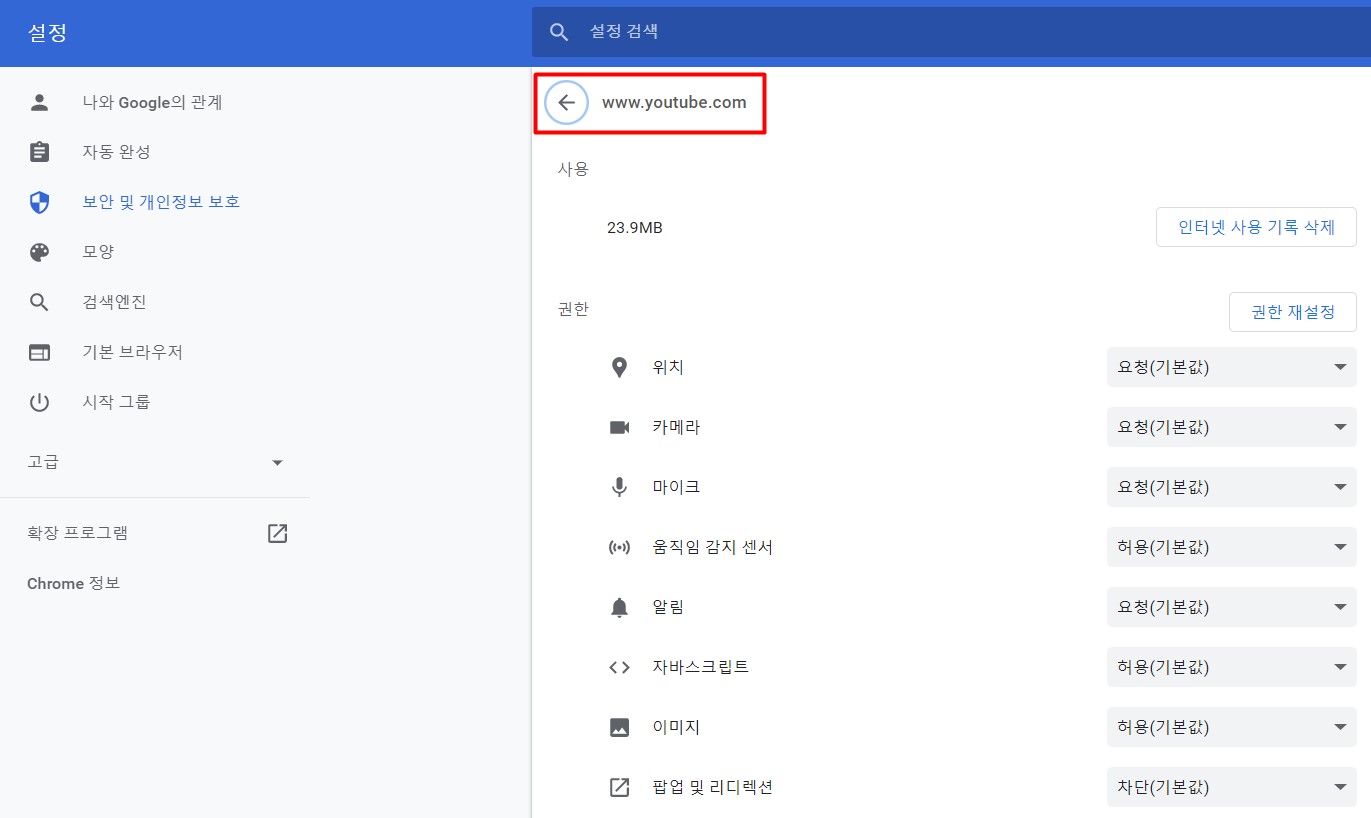 이 설정은 해당 사이트별로 설정을 바꿔주는 것이기 때문에 설정 변경을 하기 전 현재 접속한 사이트가 맞는지 주소를 먼저 확인해주어야 한다. 만약 다음 메일에서 첨부 파일 다운로드가 되지 않는다면 아래 이미지의 빨간 박스 부분에 'mail.daum.net'이라는 주소가 적혀 있어야 한다.