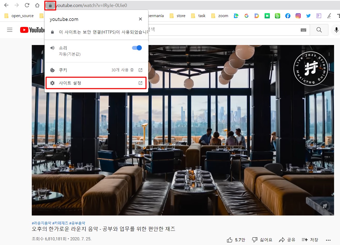 1. 크롬 인터넷 주소창 왼쪽 자물쇠 로고 클릭