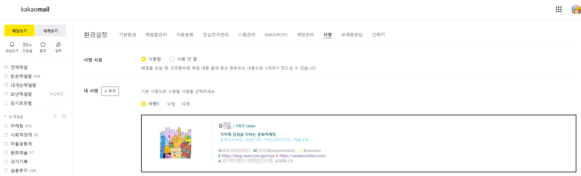메일 시그니처 사용하는 방법