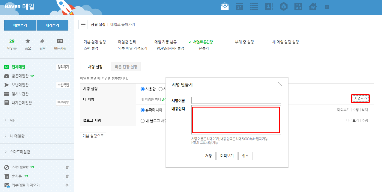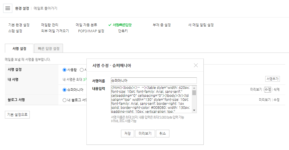 4. 네이버 메일 서명에 붙여넣기